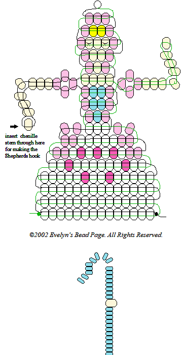 the hair (yellow beads). The arm with the Shepherds hook can be attached at the