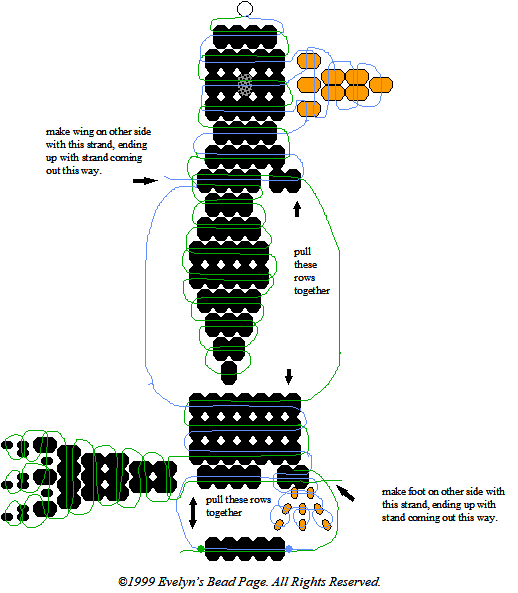The feet are done by adding 4 mini black beads and going through the 3rd bead to