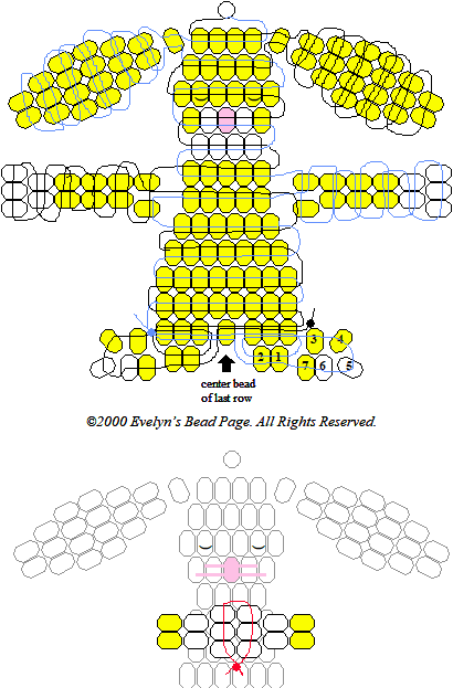 the three beads on the opposite side. Repeat procedure to make the other foot.