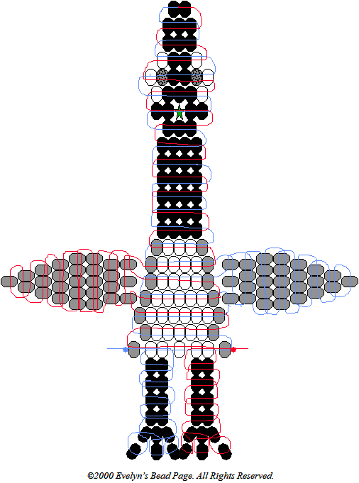 feet: Lace 8 black beads on one strand. This will be for the leg. Next, lace