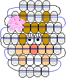 3½ yards ribbon, cord or plastic lacing 1 key ring or lanyard hook 59 white pony beads 24 clear pony beads 16 gray pony beads 7 bone or light brown pony beads 6 tan pony beads 1 coral pony bead 1 yellow pony bead 1 pink flower bead* (optional) Black sharpie marker or craft paint pen for drawing on eyes and eyelashes. Red and Blue sharpie marker or craft paint pen for drawing stripes on arms as shown. (Note: do both arms) *I found a package of flower beads at Walmart. Since the package did not contain the right flower color needed, I painted a flower using bright pink craft paint. Special Instructions: Pay