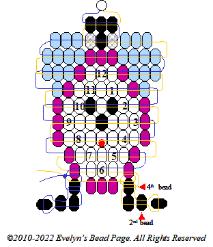 ©Terms and Condition of Use: These patterns are copyrighted and provided for your own personal or non profit use at no charge and with no guarantee. Patterns are NOT to be sold. If copies of these patterns are made, they should retain the original format including the credit line and these terms of use. Please do not link directly to the patterns, but rather to EvsBeadieCrafts.com