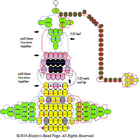 the 3-D leaf. Weave the strand from the root/vine section through the 3 green