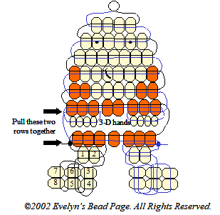 Special Instructions:  For help with the feet:  Add on 8 ivory beads.  Go back through beads 5&6, then through